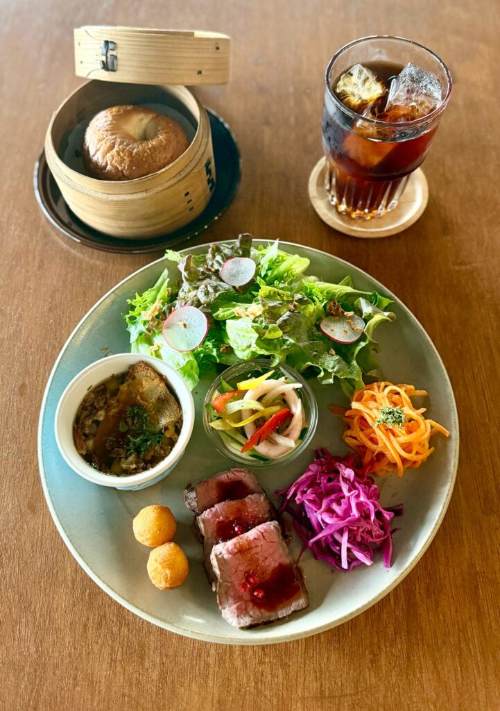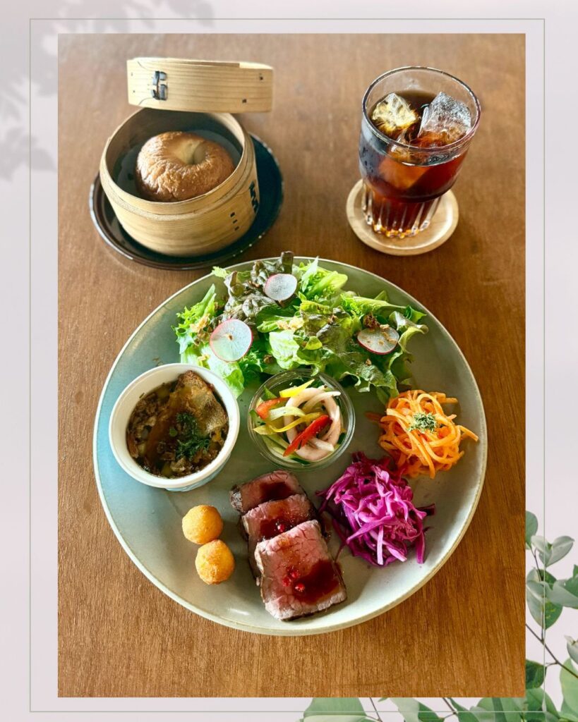 地元の新鮮な野菜を使った彩り豊かなプレートランチ