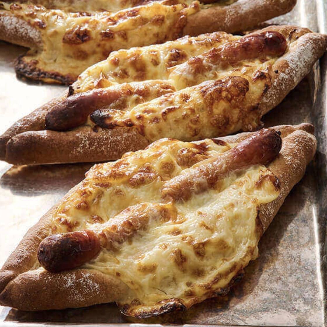 全粒粉が入ったハード系の生地にウインナーをのせ、ベシャメルソースをかけて焼きあげた惣菜パン
